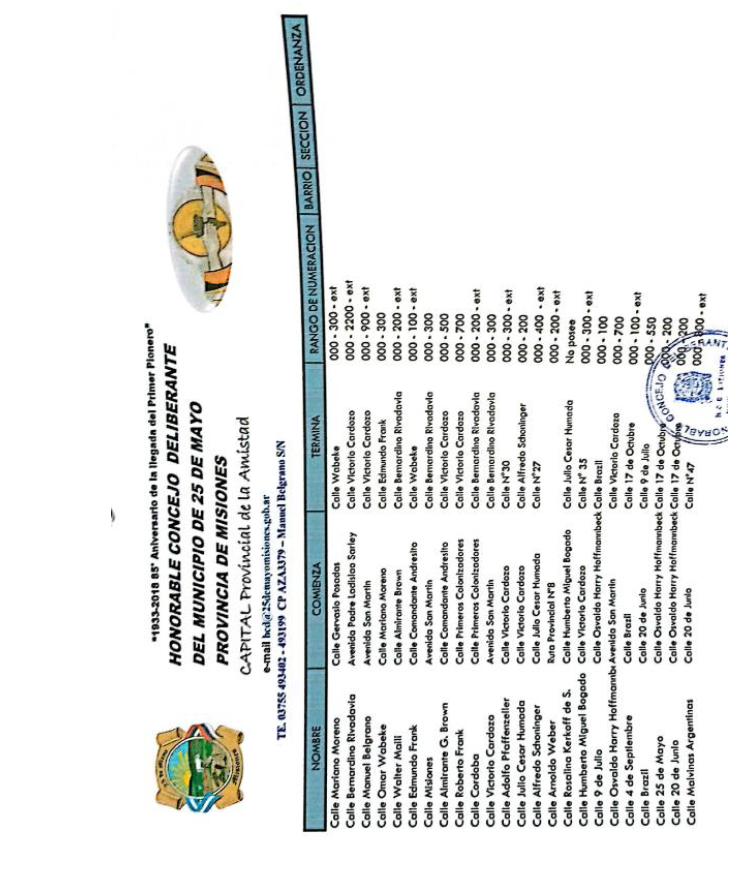 rangos de numeración de cada una, el que forma parte integrante de la presente Ordenanza.